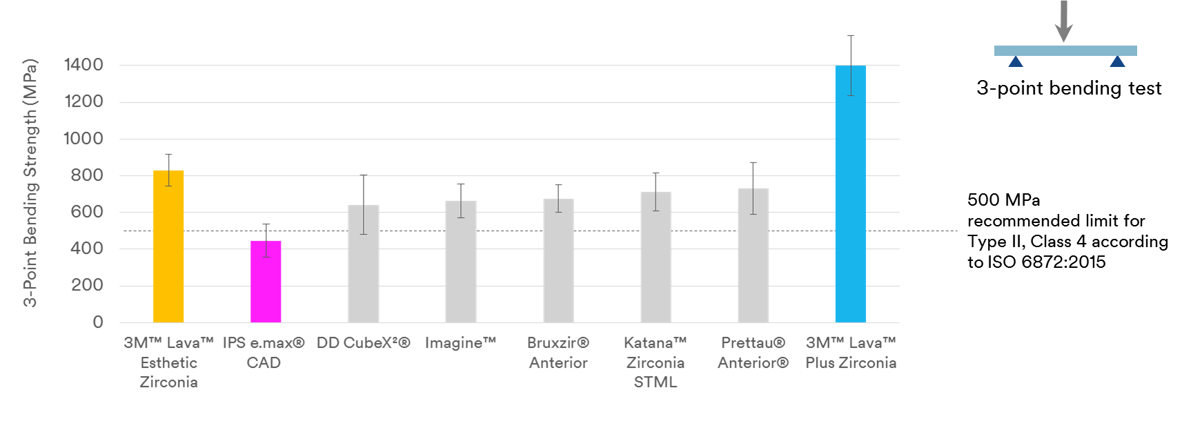 3-point bending strength according to ISO 6872:2015. Source: internal data